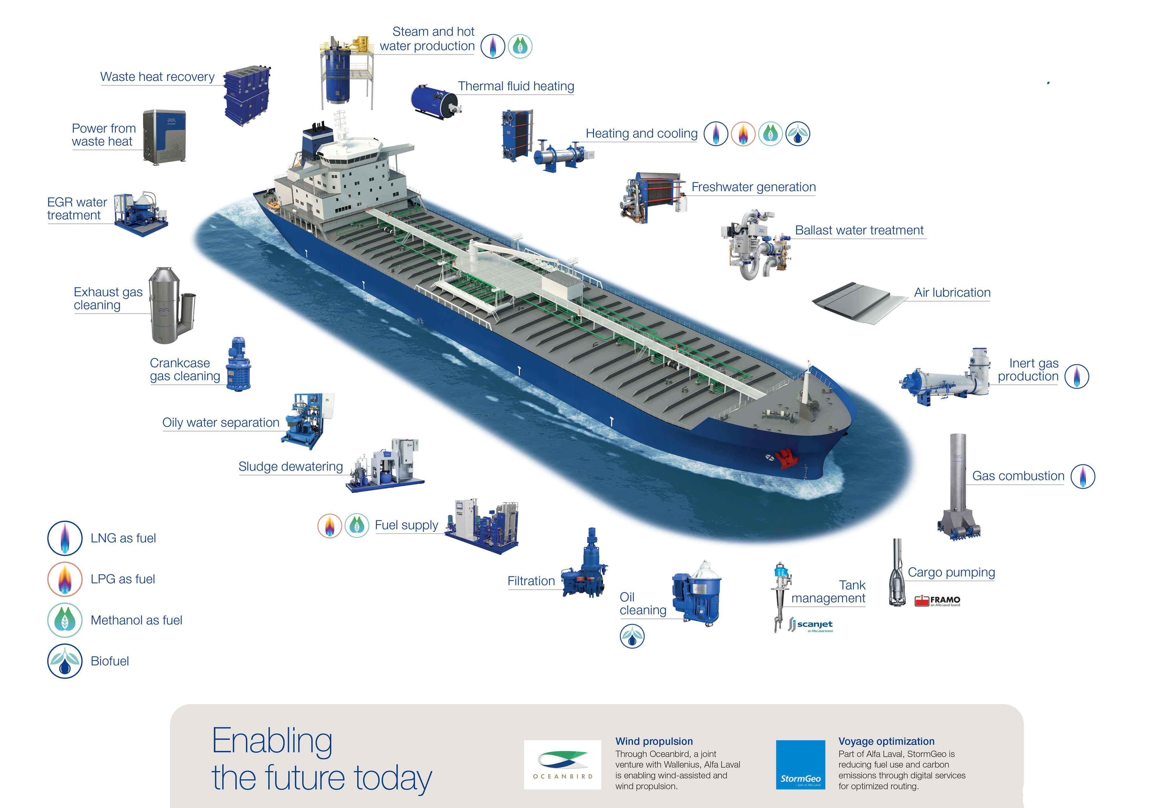 Whether you sail ships or build them, we can help you meet the challenges of today and tomorrow. From optimizing energy efficiency to navigating the fuel shift and environmental regulations, we offer innovative solutions for a wide range of applications and fuel types. We accelerate decarbonization, digitalization and create synergies between your operations to save you time and resources. At sea or in port, on board or online – Alfa Laval is your trusted partner for a sustainable future.