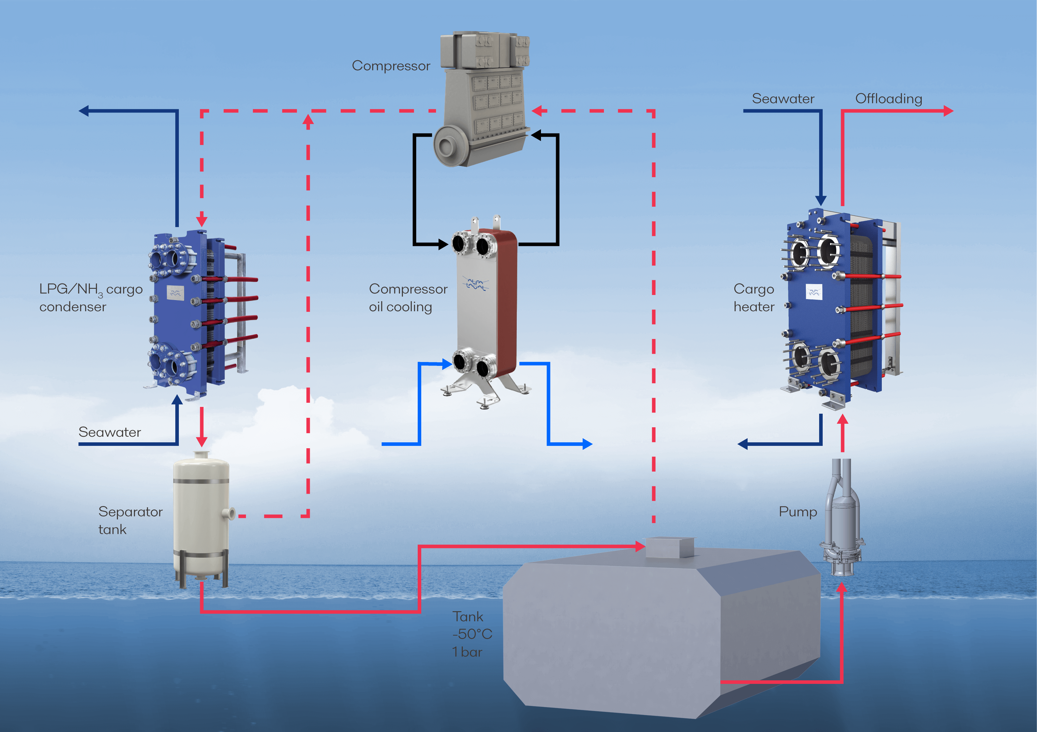 Global growth in LPG and ammonia (NH3) demand has increased the need to transport these cargoes by sea. Due to the physical characteristics that LPG and ammonia share, specialized cargo handling equipment is required on LPG and ammonia carriers. The cargo loading speed depends on efficient cooling in the cargo condenser, and there are additional thermal duties throughout the cargo handling system – especially if ethylene is also carried on board.