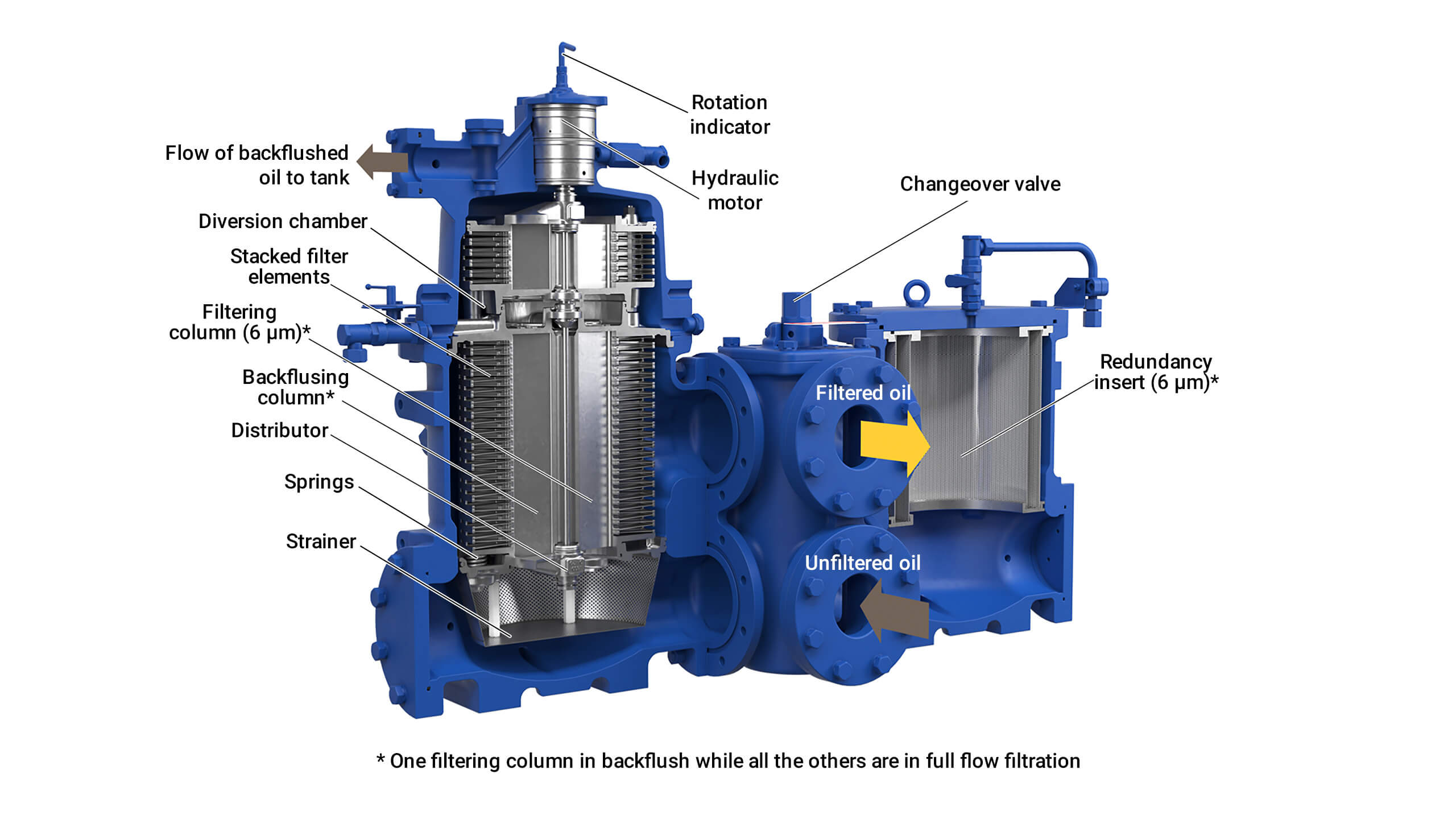 Moatti HCO filters deliver ultra-fine particle filtration with virtually no pressure drop. The secret is their innovative Alfa Laval Atrium technology, which offers the market’s best ratio of footprint to filtering surface. The redundant insert, which has even higher performance, is activated by a changeover valve for oil polishing or continuous operation during maintenance.