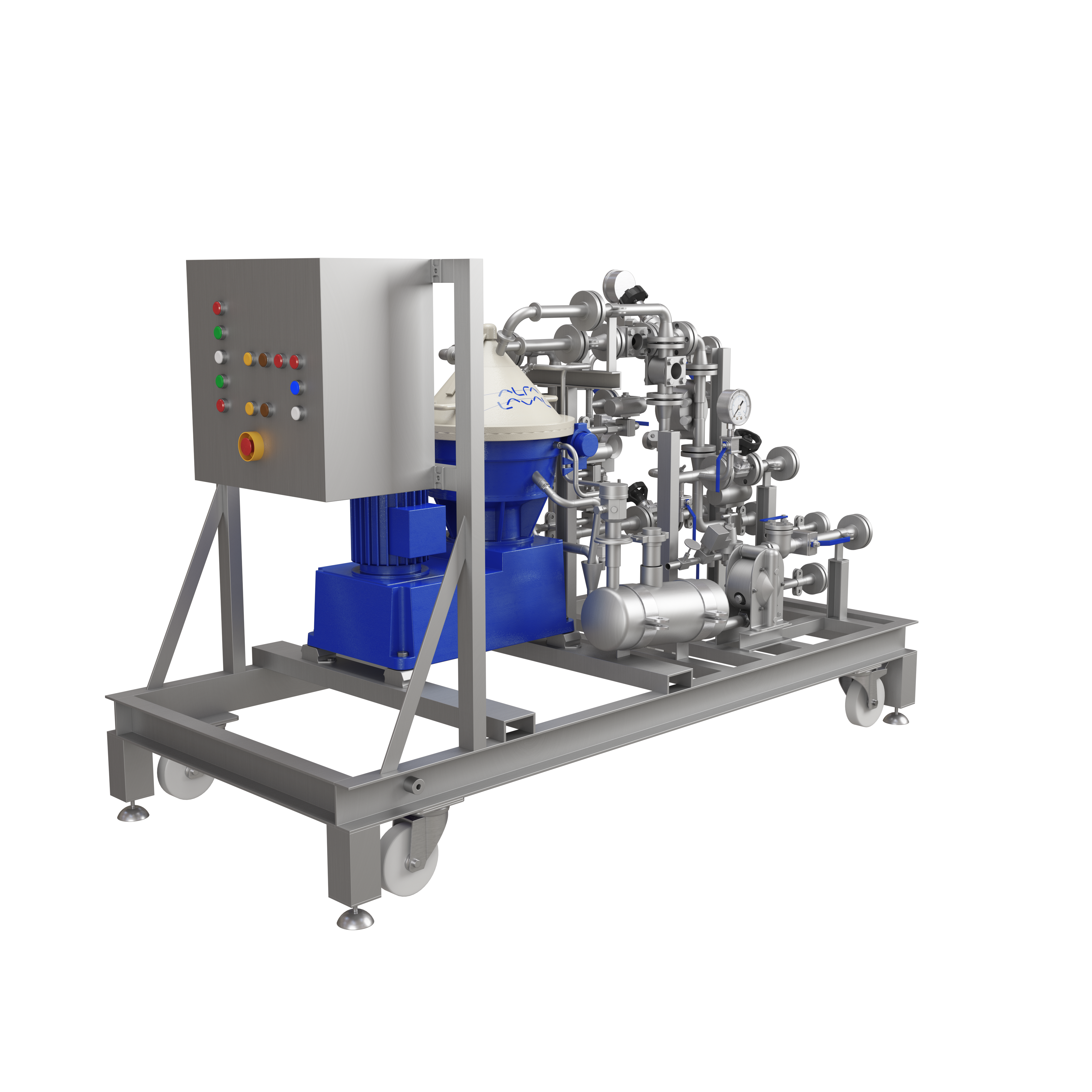 Skid-mounted disc stack separation system for industrial applications or pilot plants with small throughput. CH 20 separates liquids and fine solids in streams with small amounts of solids.